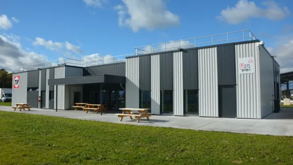 - Construction of a building housing a security control centre, a lounge for drivers, toilets and showers with a women-only area, a laundry room, vending machines and other services